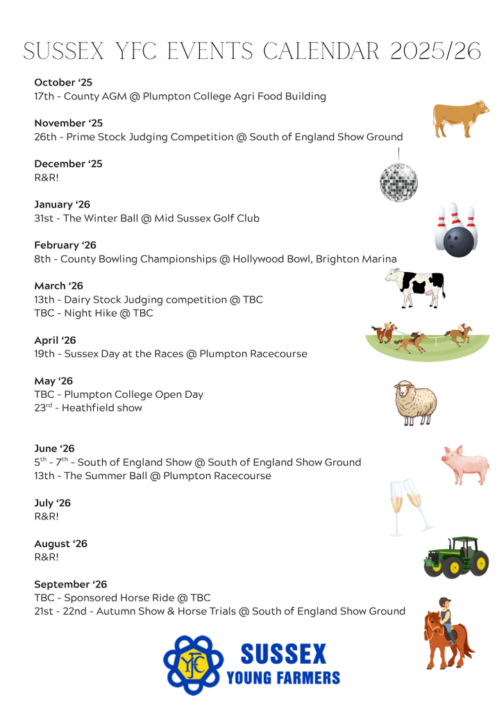 For more information find us on Facebook ‘Hailsham Young Farmers’ or our Instagram @hailshamyfc or contact hailshamyfc@gmail.com